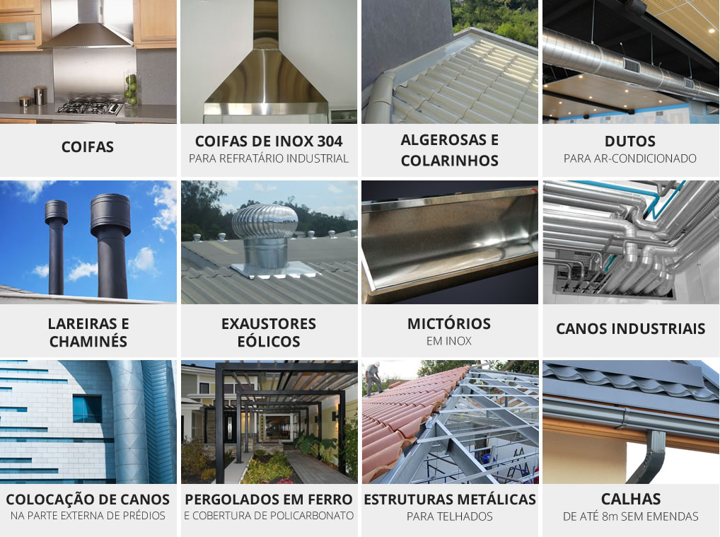Utilizamos materiais como alumínio, aço galvanizado, aço inox, aluzinco, bronze e cobre.
